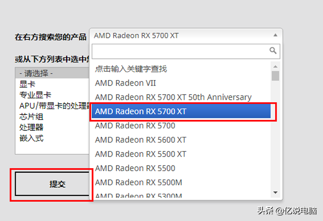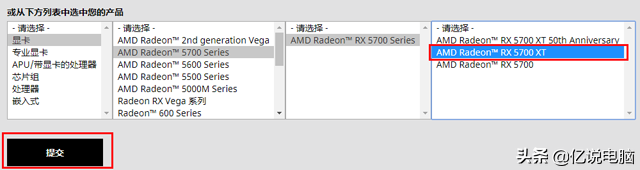 2.AMD显卡,百度AMD官网,或输入网址www.and.com,进入到AMD的官网,点击网页上方的驱动与支持,进入驱动下载页面,我们可以直接在下拉框里选择显卡的型号点提交,也可以像英伟达一样利用筛选功能筛选出我们的显卡再提交。然后再选择系统版本,再选择不同日期的驱动程序,选好之后点击下载,待下载完成后同样得到一个.exe的应该程序,双击打开,下一步下一步安装就可以了。