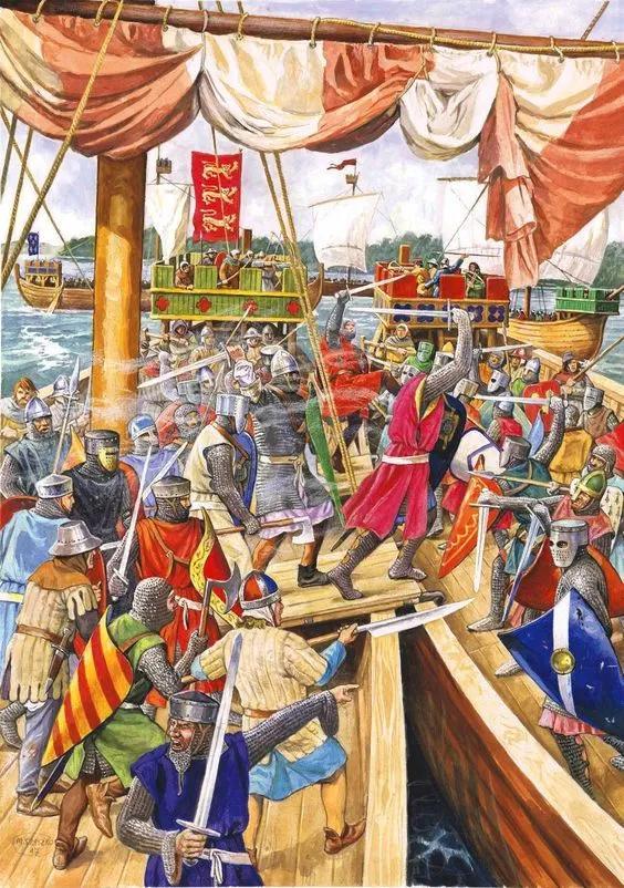 同时,远在伦敦的约翰一世也意识到自己同法王摊牌的时间临近。 虽然皇家海军在前一年的胜利后,逼迫菲利普二世从弗兰德斯撤军,却没有对死敌造成多大损伤。那支惨遭摧毁的法国舰队,主要由倒向巴黎集团的诺曼底、布列塔尼和阿基坦叛逆组成,丝毫不触及菲利普及其忠臣们的核心利益。倒是勉强熬退王师的弗兰德斯,惨遭撤退法军的焦土扫荡战术,承受着非常巨大的经济损失。以至于靠对口贸易创汇的英格兰畜牧业,也因前线海军的胜利而反遭重击。