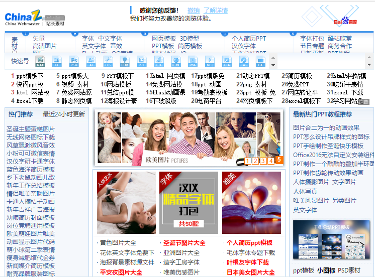 站长素材,对于经常需要找各种素材的小伙伴来说,对于这个网站应该不陌生,它是一个种类详细,资源类型很多的素材网站,在这里除了有免抠的图片素材之外,还有各种办公所需的素材。