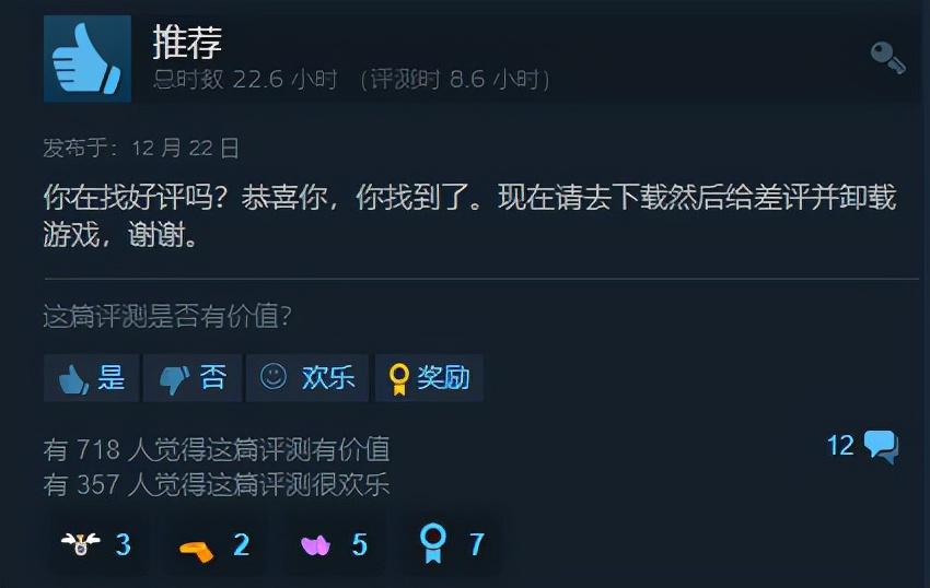唯一几个给它拉高好评率的还是一些反串黑。