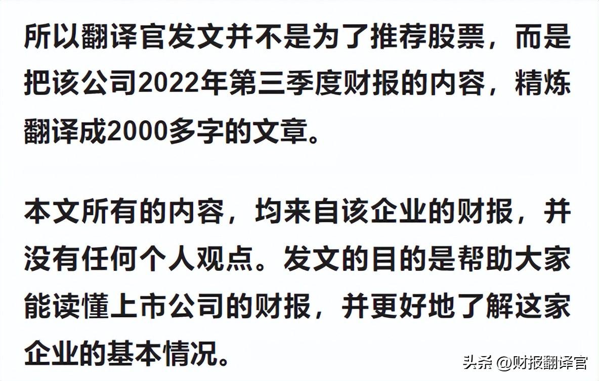 以下内容和财务数据均源自该公司2022年第三季度报,并没有任何个人观点。