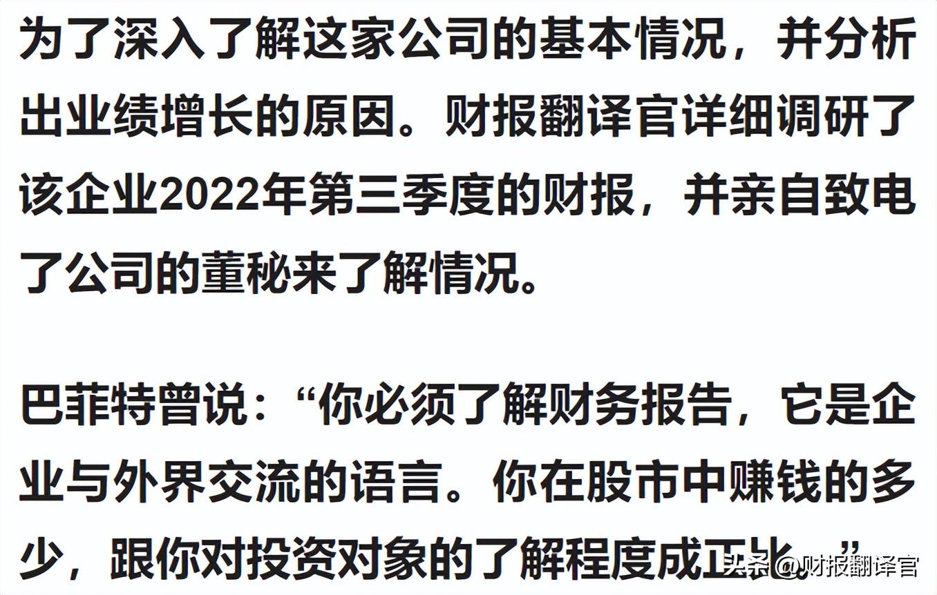 (文章的最后翻译官会告诉大家该企业的名称和股票的代码,请先客观中正地了解完公司的基本情况,再去揭晓最终的答案)