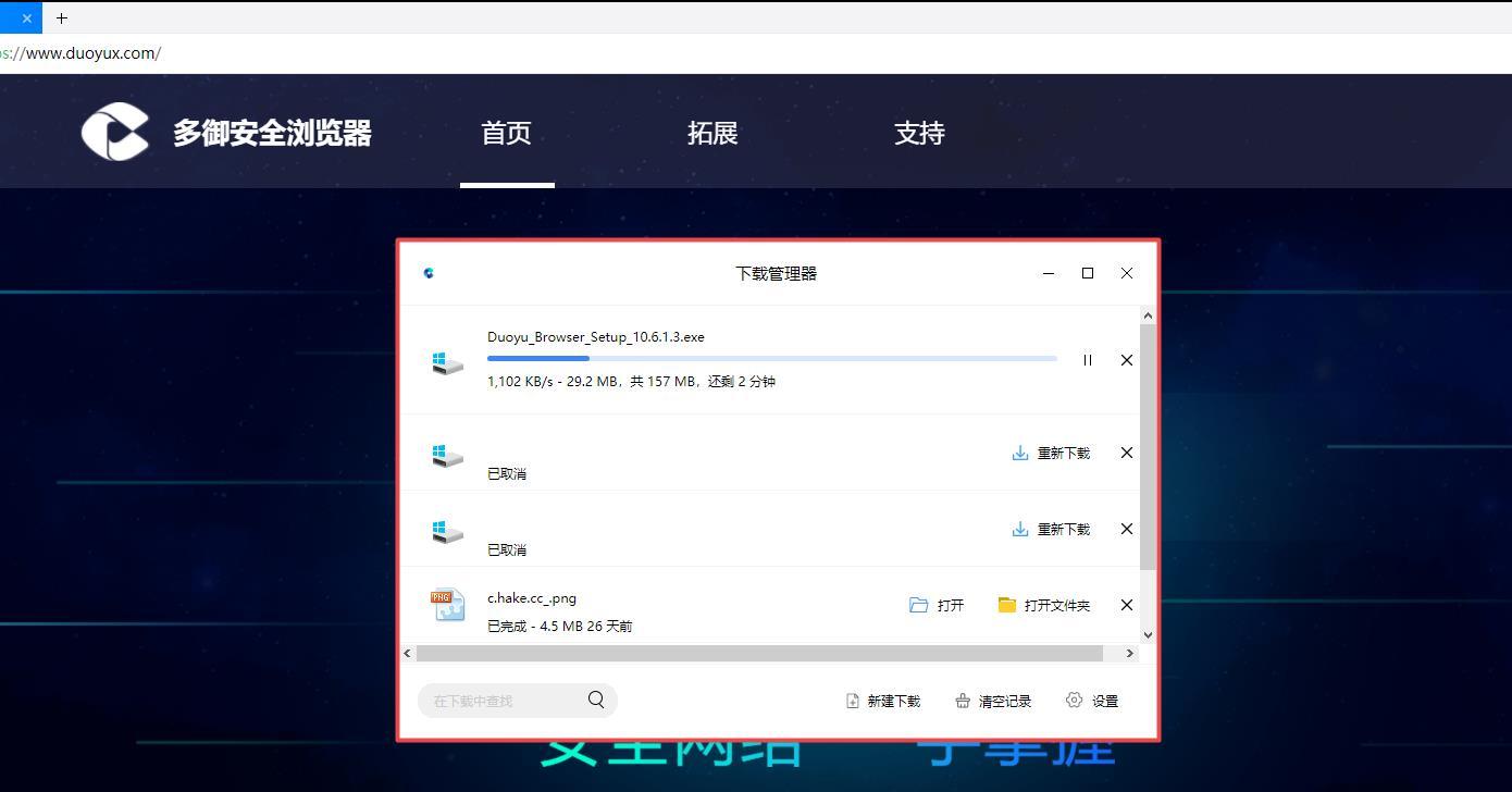 浏览器下载管理在哪?(Windows版多御安全浏览器)