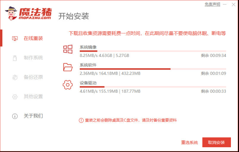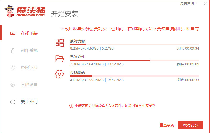 2、等待软件下载安装系统的各项资源。