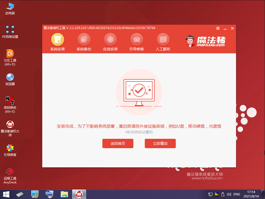 9、提示系统安装完成后点击立即重启。