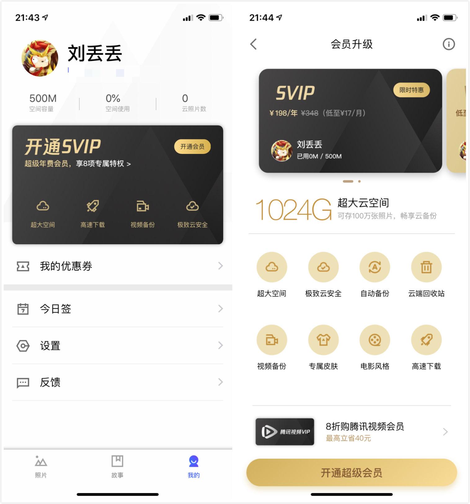 在存储空间上,腾讯相册管家就没那么良心了。它只提供免费的 500MB 空间,开通会员才能升级,目前 SVIP 正在打折,每月 17 元可以享受 1TB 空间,以及自动备份等功能。