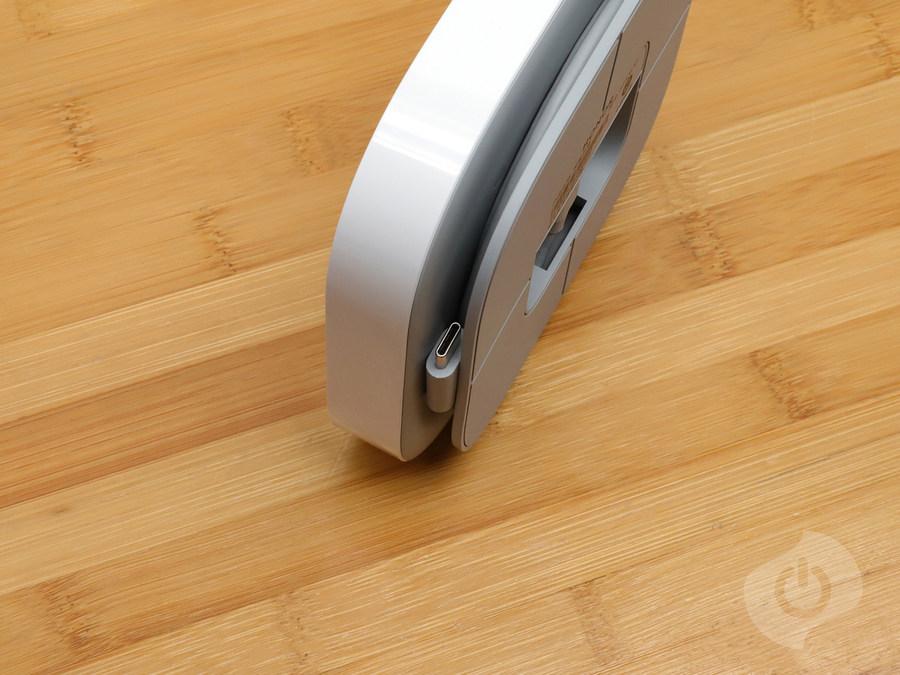 Type-C数据接口位于荣耀存储背面中部,只能用来传输数据。数据线在插入数据接口前会先穿过灰色支架,让连接更稳定,避免外力拉扯线材对插口的损坏。