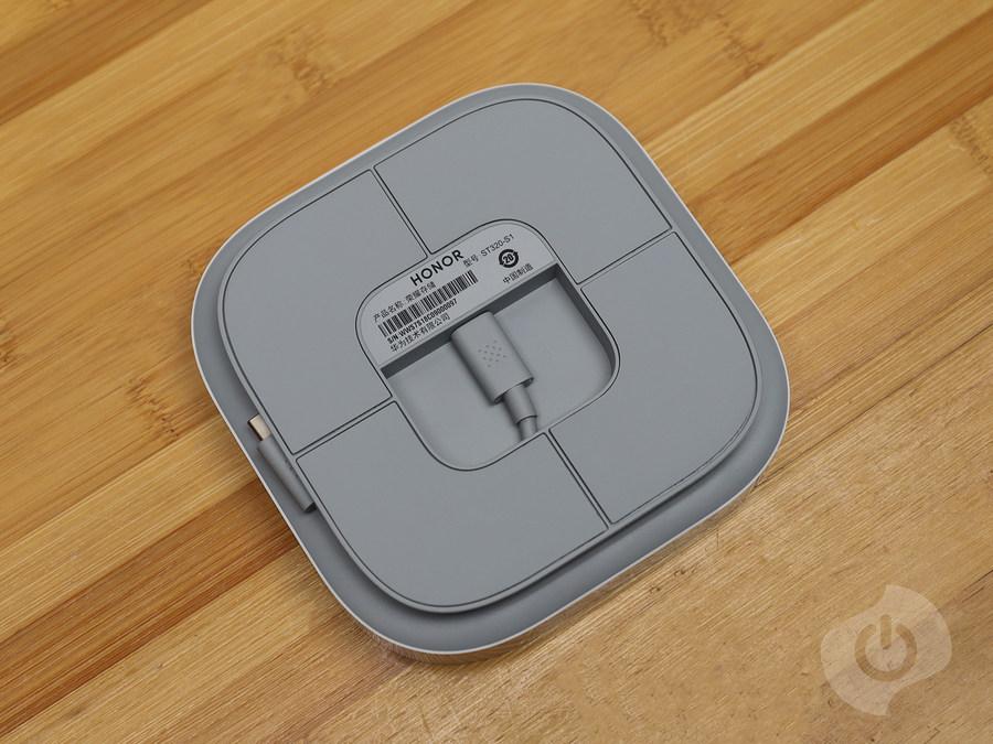翻到底部,荣耀存储主体下有一个灰色支架,支架用来收纳自带Type-C to Type-C线。