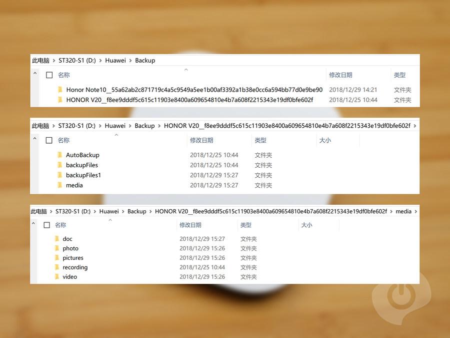 脱离手机之后,荣耀存储就是一个1TB的移动硬盘。用户可以用荣耀存储备份或管理电脑上的文件。如果备份过手机数据,荣耀存储内就会出现按照机型分类的数据文件夹,进入不同文件夹能查看不同的备份数据。