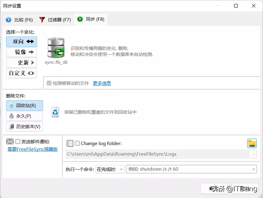 软件提供了4种同步方式:镜像同步、双向同步、更新同步和自定义同步。