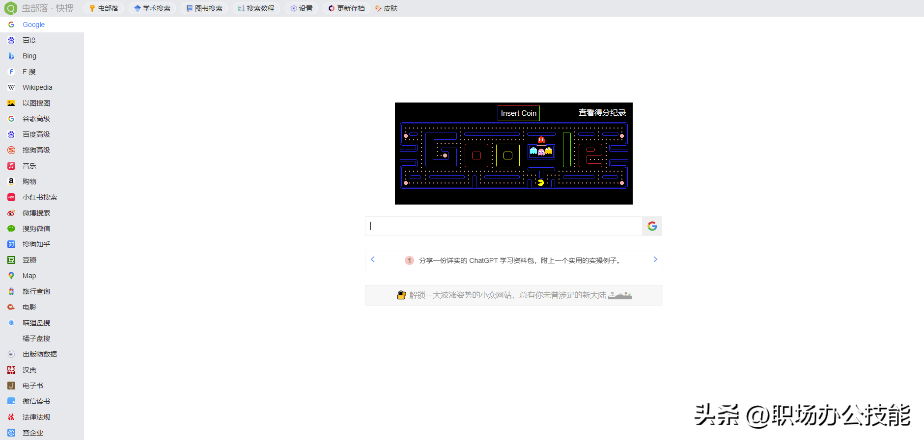 一个聚合搜索引擎工具,它集合了谷歌搜索、百度一下、必应搜索、高级搜索等多种搜索引擎,还有搜索音乐、网盘、电子书等网站,直接切换就能快速搜索资源。