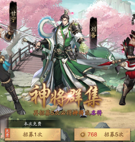 大家过完了新手剧情就可以拥有一次免费的招募机会,而且会有一张保底的橙卡。最重要的就是,这轮的免费招募可以无限重置,一直到抽中主公喜欢的将领为止!