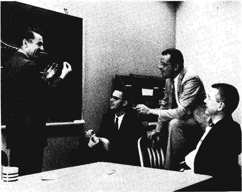 图9 咖啡时间的非正式讨论。左起:Ivar Giaever, Walter Harrison, Charles Bean, and John Fisher