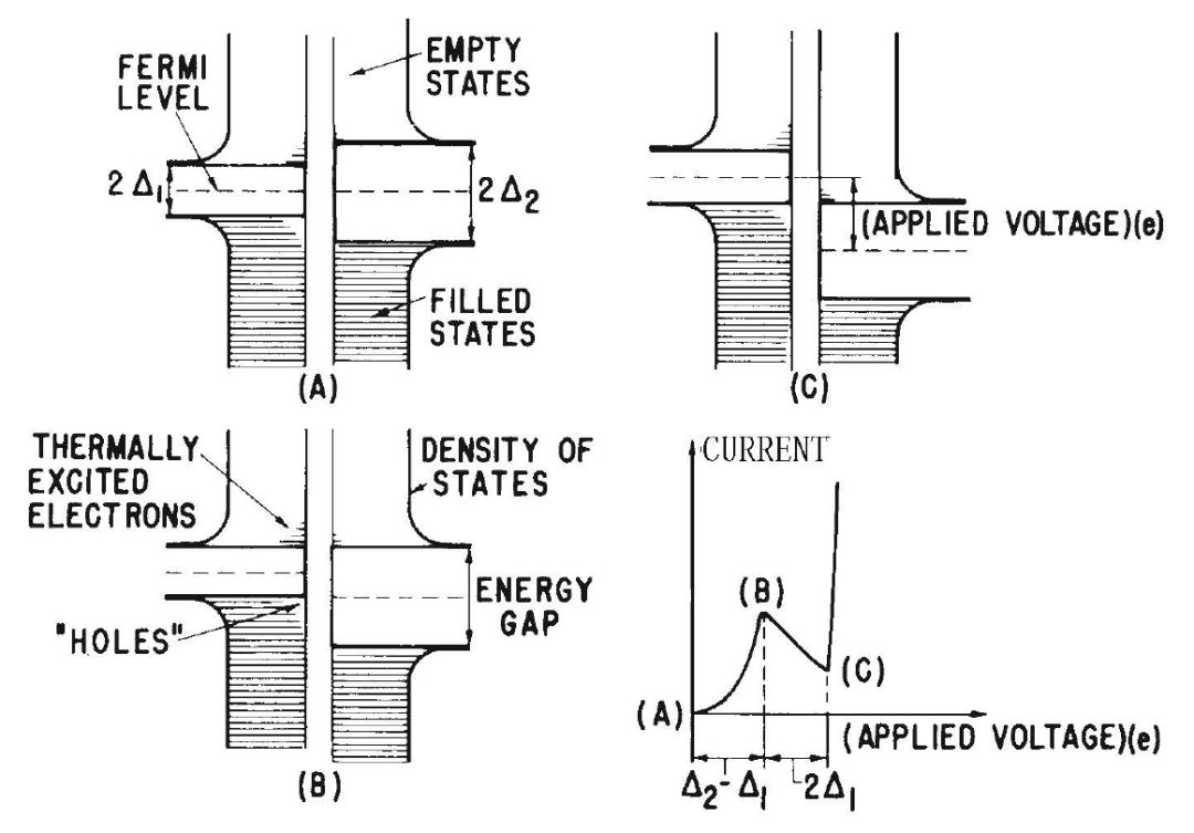 在我的实验记录本中,日期为1960年5月2日的条目是:“4月22日星期五,我进行了以下实验,旨在测量超导体中的禁带能隙。”这显然是一条非同寻常的记录,不仅是因为我几乎不怎么写实验记录,而且因为正是这个实验的成功,我今天才能非常荣幸地在此向各位致辞。对于我来说,这个实验有一些偶然或幸运,在本次讲座中,我将尽可能地回忆与其相关的一些事件和想法,尽管讲清楚这件事并不容易。对各位来说,我希望这个主观的回忆比严谨的讲座更有趣一些,尤其是在现在已经有许多关于超导隧穿的优秀综述文章的情况下。