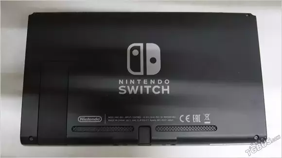 作为最核心的部件,Switch本体从正面看起来就是一整块屏幕,背面印有硕大的LOGO,下方除了标识信息,还有两个扬声器出口。背面右侧是可以打开的支架,当你需要将Switch以“平板模式”立于桌面上时,就可以打开支架作支撑。之前有疑虑:只有半边的支架,能否保证机器在桌面上的平稳。经过实际测试后发现这完全是多余的担心,支架支撑的本体非常稳,不会有侧翻的问题。另外,这个支架后面隐藏着Switch的microSD卡槽。