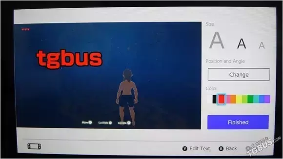 相册功能承载了用户通过“截屏”键保存的截图文件。玩家可以在这里查阅所有图片,并进行复制、删除等基础管理操作。说起来,这次Switch的截图功能很是不错,无论是系统菜单还是游戏内,只要按下左手柄最下方的截图键,就能把当前画面立刻保存为图片,非常方便。系统还提供了文字编辑功能,可以在图片上添加简单的艺术字效果。从菜单选项上看,截图是可以直接上传到社交平台上。至于能否通过USB设备做本地保存,待首日补丁开放下载后我们会进行测试。