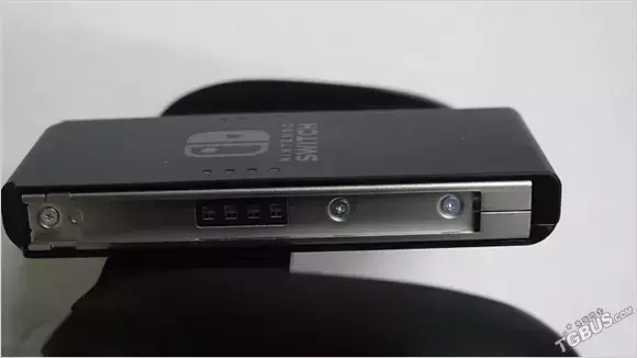Switch本体顶部的左侧是电源开关和音量调节按钮,右侧是耳机接口与游戏卡带槽。中间是散热口。底部的中央,有一个USB-C接口。