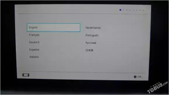 第一步,设定系统语言。可选语言为英语、法语、德语、西班牙语、意大利语、荷兰语、葡萄牙语、俄语和日语。暂无中文支持。