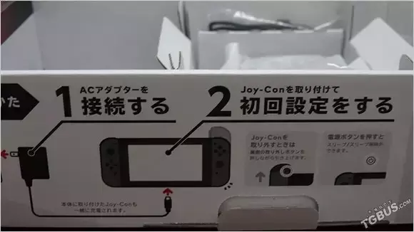 由于本身体积的关系,Switch的包装盒相对以往产品要小得多,相对应的,整套产品的重量也比较轻。我们体验的这台机器为日版机,包装盒正面除了醒目的Switch标识外,展示了家用形态的构成:插装在Joy-Con握把上的Joy-Con手柄,以及接驳底座的Switch本体。包装盒的背面,则是让你直接了解到Switch便携模式的拼接方法。整体设计非常简洁。