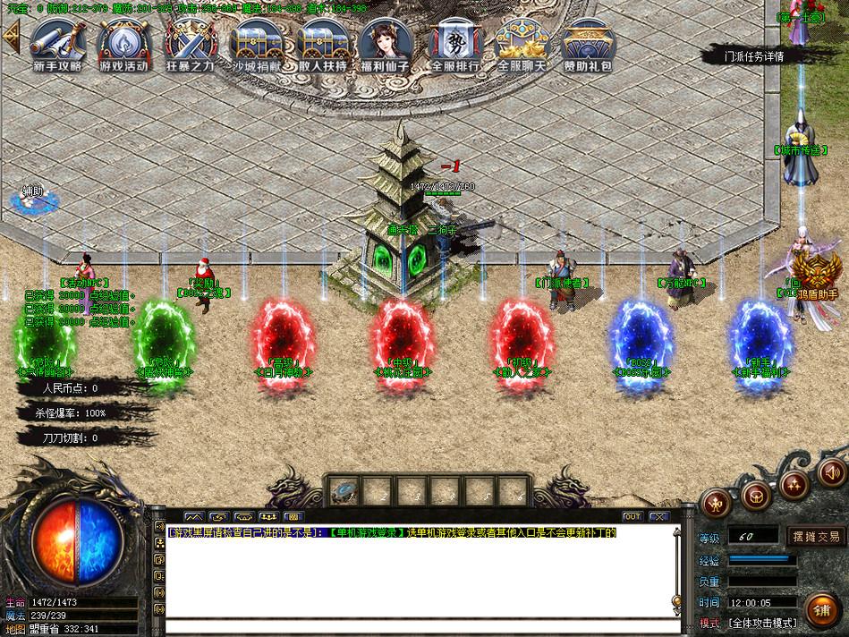 【功能功能】:3个大陆内容,无限合成,最高合成雷霆+100,全自动合成,自动存仓库,带狂暴沙捐,通天塔,BOSS之魂,酷炫大光柱,切割装备,四圣之力,强化加星,生肖合成,血牛元素,神力系统,可以玩到爽的二合一版本