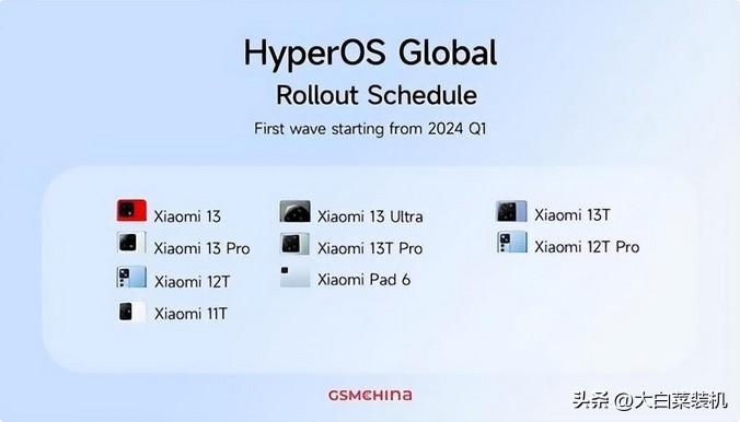 外媒称,从2024年第一季度开始,HyperOS全球版将开始向用户推送,数以百万计的用户正在热切地等待新系统的到来。以下是外媒公布的推送设备及其版本号: