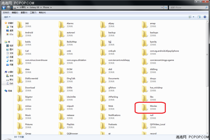 6.找到其中的"MOVIES"文件夹,这里就是存放照片的地方,双击打开