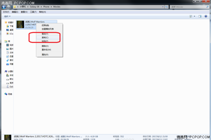 7.将MOVIES文件夹中的电影文件拷贝到电脑中,直接复制黏贴即可