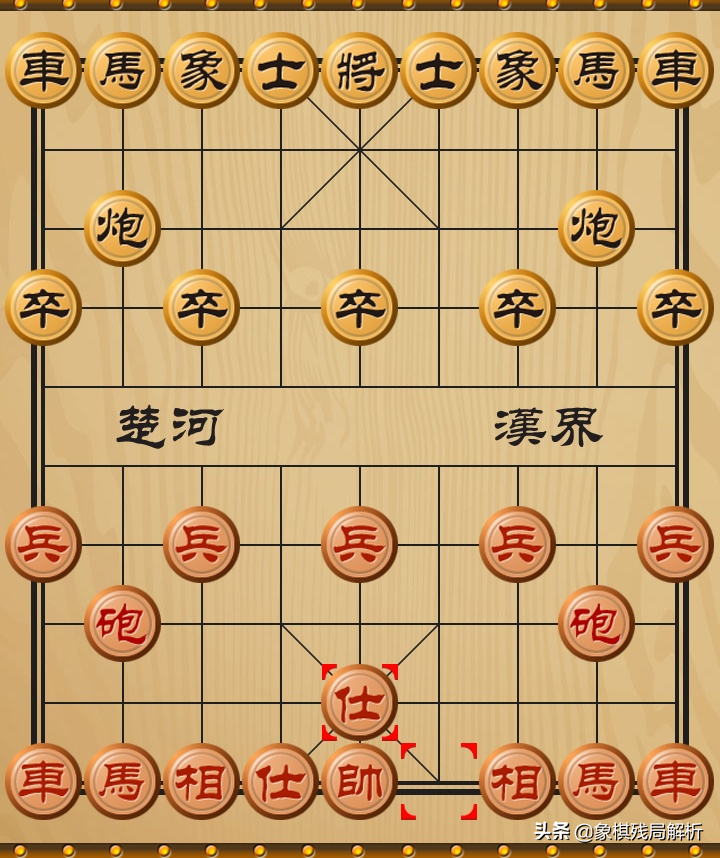 这一条主要是告诉我们,下棋时如何补好士象是有讲究的,上好上错士、象对局势的发展都会造成极大影响。士象在开局阶段的分值都各是2分,而且都是弱子、守子而非进攻的子力。所以士、象不能过多走,否则棋就下的保守了,也就影响车马炮大子的出动。故有,走车胜走马、炮而走马、炮胜走兵、士、象(这点也是老师的“感悟”)。先来解说下如何上好“士”,一般来说对方的车在右肋的话,我们就要上“右士”把“背”“屁股”对他的车,而不能“将门”对着他这样自己的“将”“帅”就走不出去,有引狼入室的感觉。攻击型开局不要轻补士象。稳健型要适时飞相上士,并注意对方车的动向和已方车的通路。