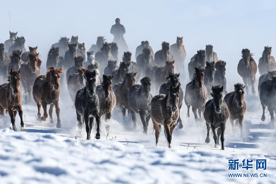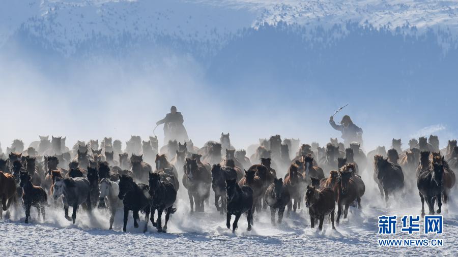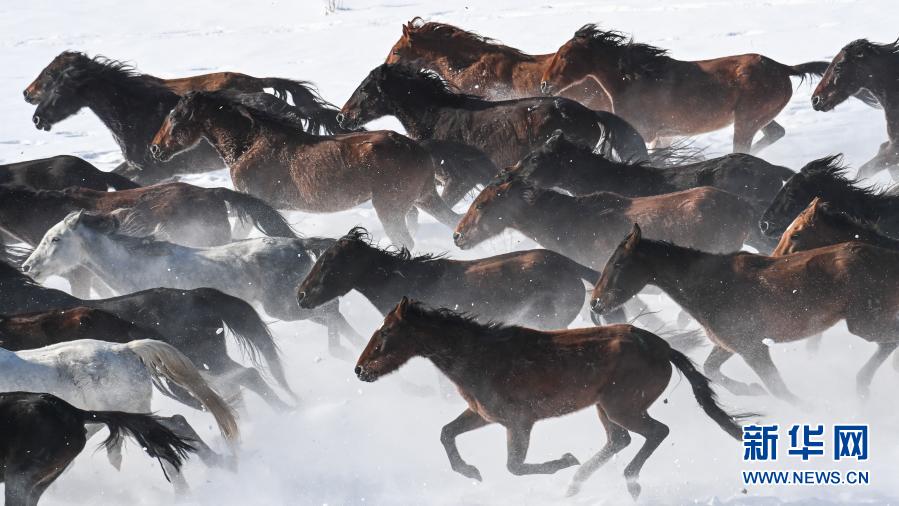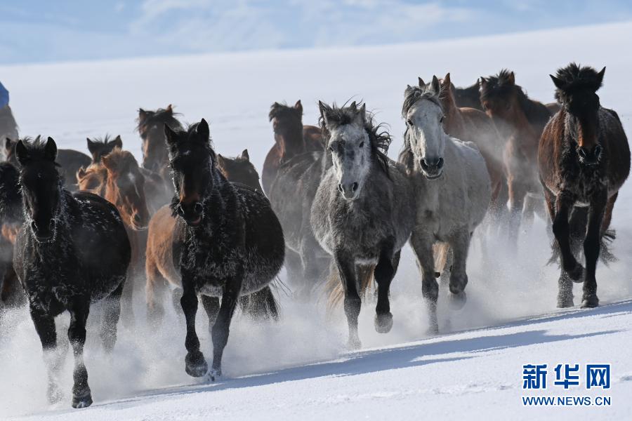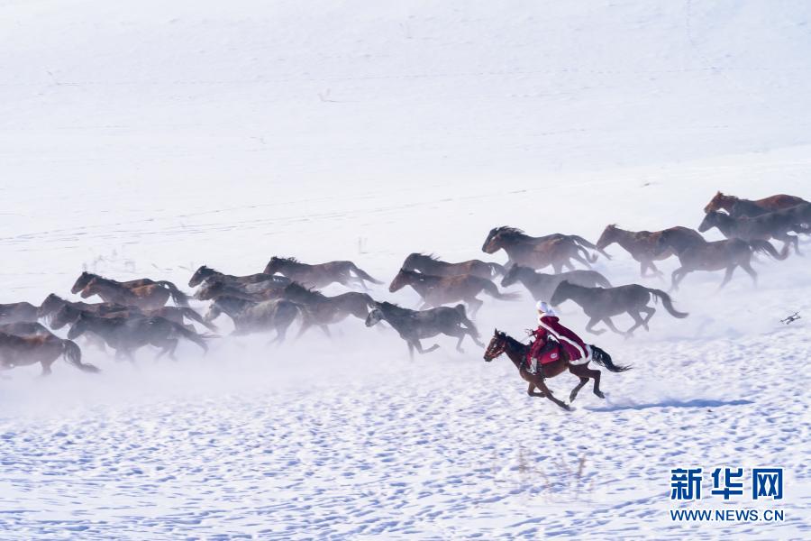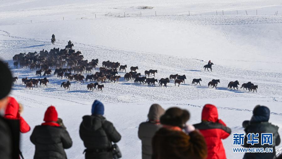 这是12月20日在昭苏县天马旅游文化园拍摄的驰骋的骏马。入冬以来,新疆伊犁哈萨克自治州昭苏县依托优质的冰雪资源,举办叼羊、赛马、姑娘追等丰富多彩的活动,吸引了众多游客。昭苏县位于新疆伊犁河谷西北部,草原辽阔,现存栏各类马12万匹,被称为“天马之乡”。近年来,昭苏县凭借雪资源和马资源,围绕“冰雪风光、冰雪体育、冰雪奇趣、冰雪民俗”等主题,打造特色冬季旅游品牌,发展“全时、全季、全域”的旅游新业态,带动当地农牧民增收致富。