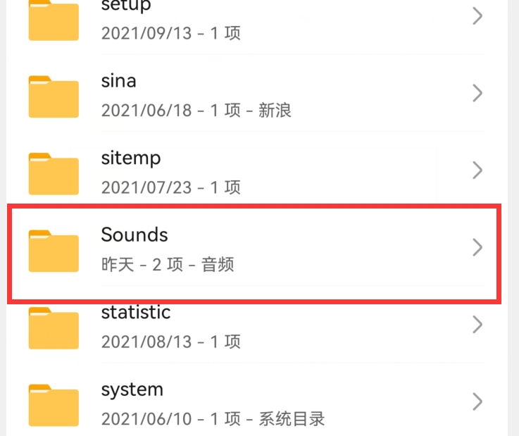 七、Sound文件夹 。这个文件夹是用来存放手机上的声音文件的,如:录音机录制的声音,就是存放在这个文件夹里的。如果里面的声音文件不重要的话,我们可以删除它。如果有重要的声音文件,备份它们,然后再删除。