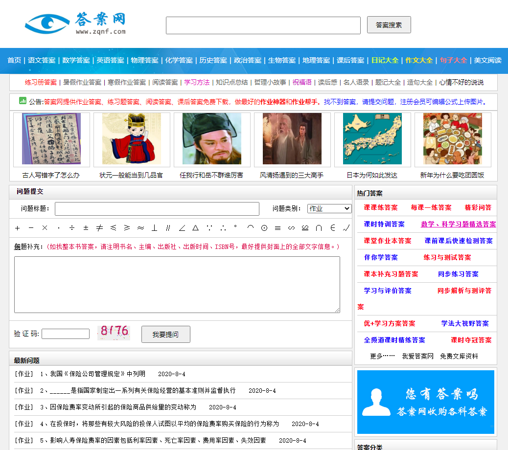 答案网(www.zqnf.com)是一个集合了各行各业专业知识和实用信息的网站,旨在为用户提供高质量、实用性强的内容和解决方案。用户可以在答案网中搜索自己感兴趣或需要解决的问题,并从中获得精准、实用的答案和建议。