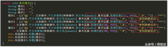为了打消用户的顾虑,获取用户的信任,使用欺骗手段,利用技术制造随机生成的隐匿扣扣号破解成功的轮播消息。虚假轮播破解成功消息的软件交互界面和实现源码,如图3-2、图3-3所示: