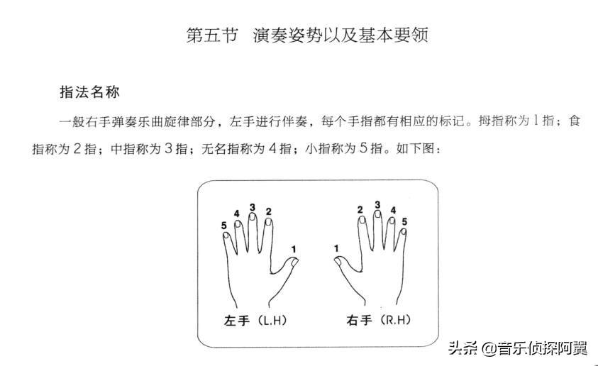 一、双手除了左手拇指,其余手指都能参与弹奏。具体说来,右手指法有以下几种。