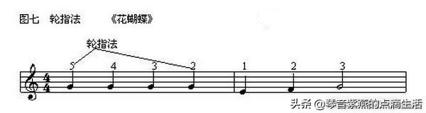7.轮指法:手指按顺序轮番弹奏一个琴键,如图七。