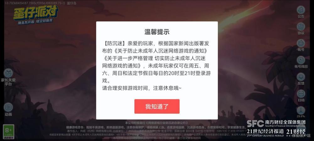 (图说:以《蛋仔派对》为例,严格落实防沉迷系统。)