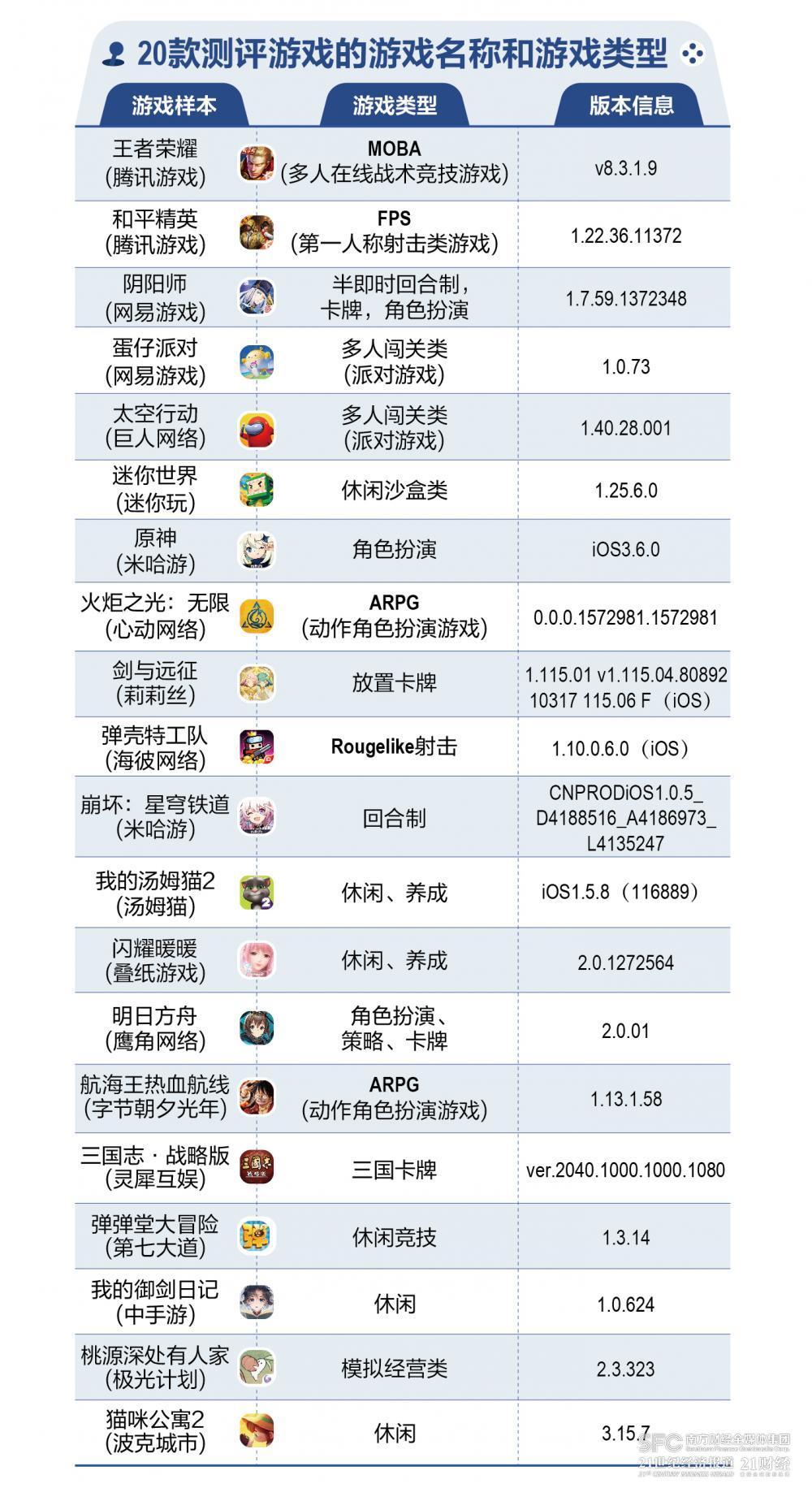 (图说:20款手游未成年人保护机制测评(2023)得分一览。)