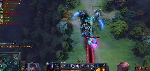 Liquid的TA在做出暗灭后转入进攻节奏,上路成功融化掉小鹿后推到一塔,中路抓到大牛又将其击杀。