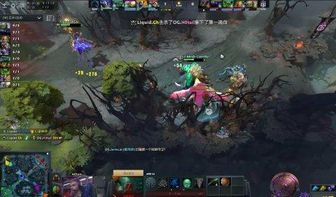 Liquid已经陷入僵局 ,小狗中路带线又被灵活的OG双大哥秒掉,此时OG领先10K经济。