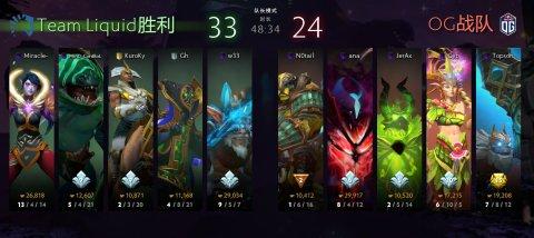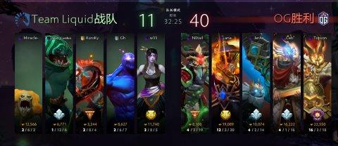 在OG拿下肉山盾后一波上高,Liquid努力反抗仍是在经济装备碾压下团灭,打出GG。