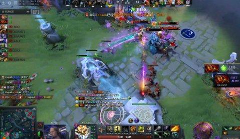 34分钟OG小小抓到落单TA先手,骨法位置偏远没有跟上控制,幽鬼开大飞过来要收掉TA。