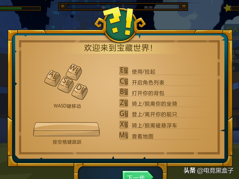 值得一提的是,当你选定职业后,并不是直接进入到世界中,而是直接进入游戏教程。新手玩家可以根据教程,学习职业技能的使用直到熟悉。单就这方面,《宝藏世界》相对于《我的世界》来说就良心的多了。