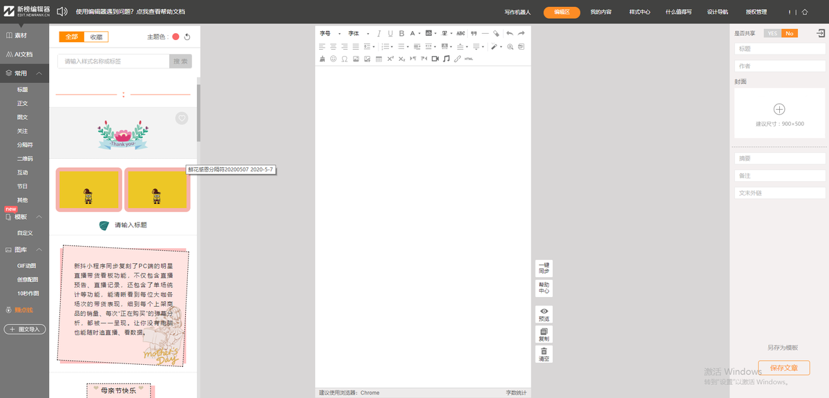 6、云端存稿;自动保存文章排版内容,便于突发意外情况排版找回。
