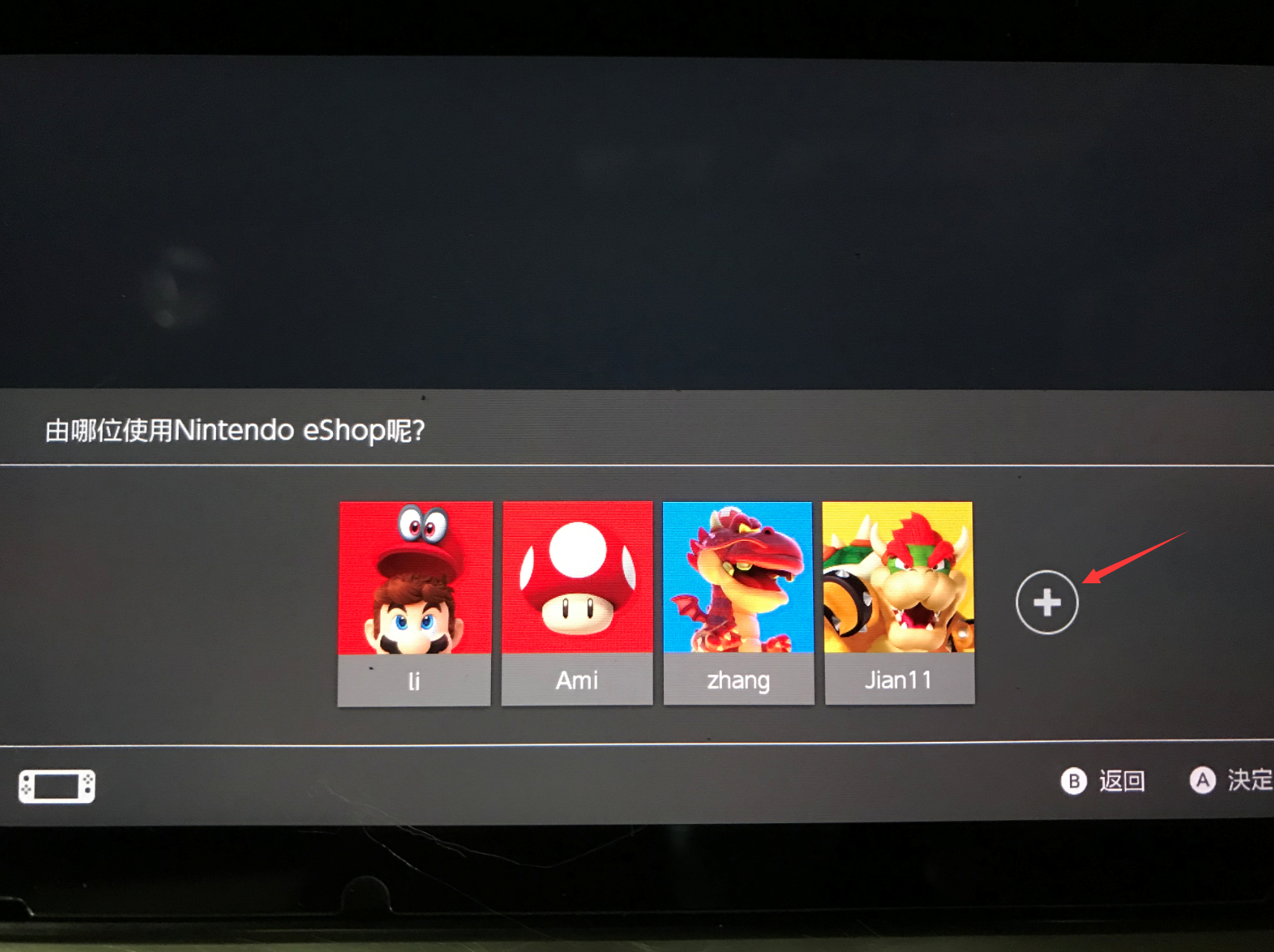 首先打开eShop程序,选择最右边的+号,并选择建立新的用户,然后选择昵称和头像。