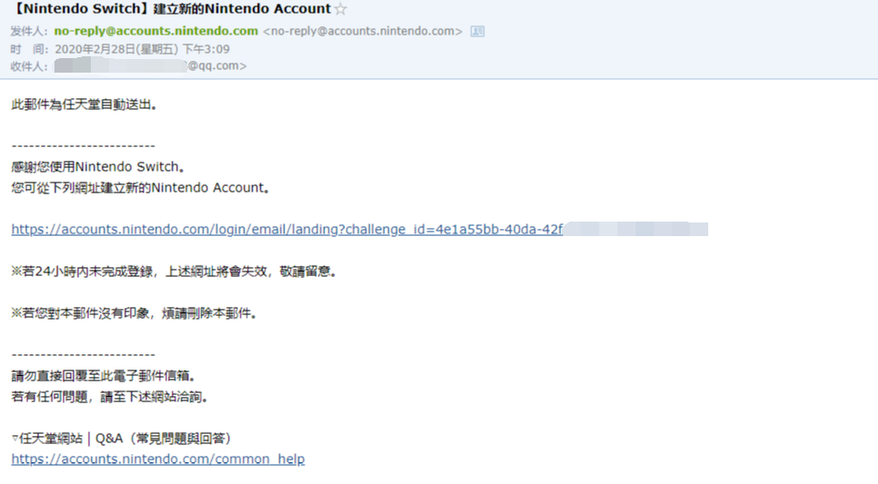 显示成功之后,用电脑或者手机打开你刚刚填写地址的邮箱,便会收到一封由任天堂官方自动回复的,包含建立账号网址的邮件。