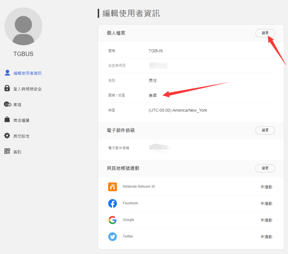 切换的方法也非常简单,登录my.nintendo.com网站,然后登入你的账号,点击网页右上角的用户头像,选择My Nintendo设定,之后便可变更国家/地区。