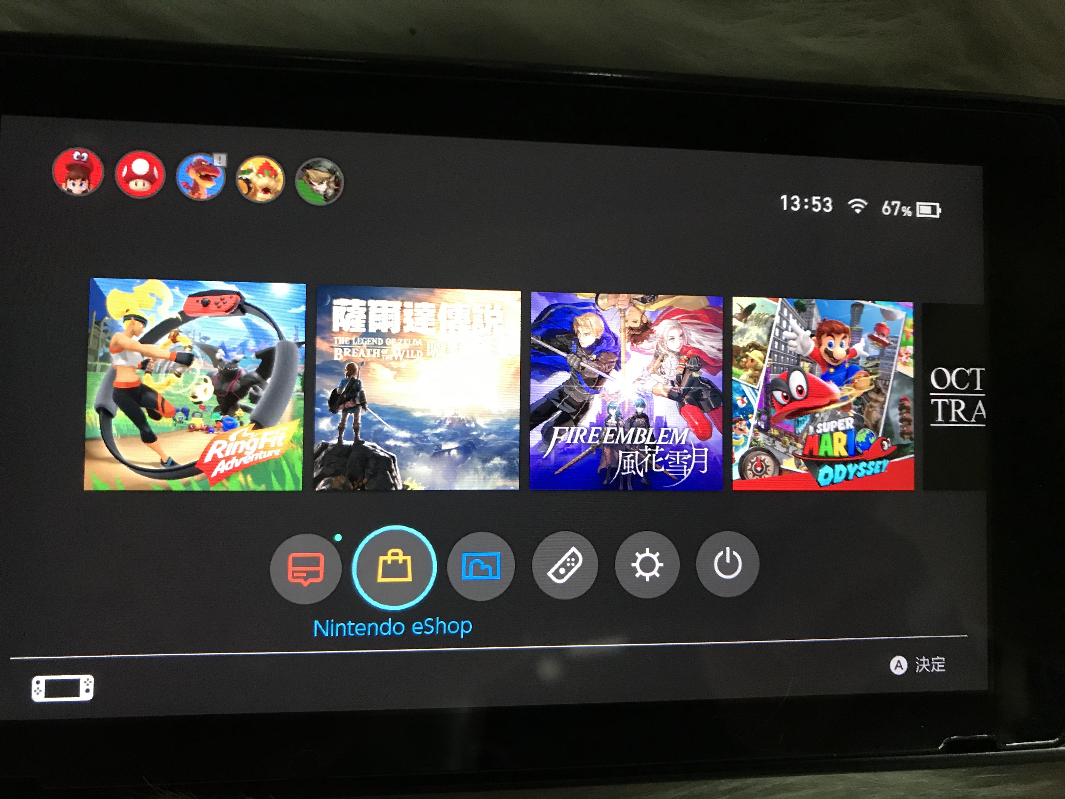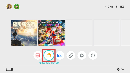 打开NS后,在主机最下面一排第二个Nintendo eShop就是我们常说的任天堂官方数字商店。