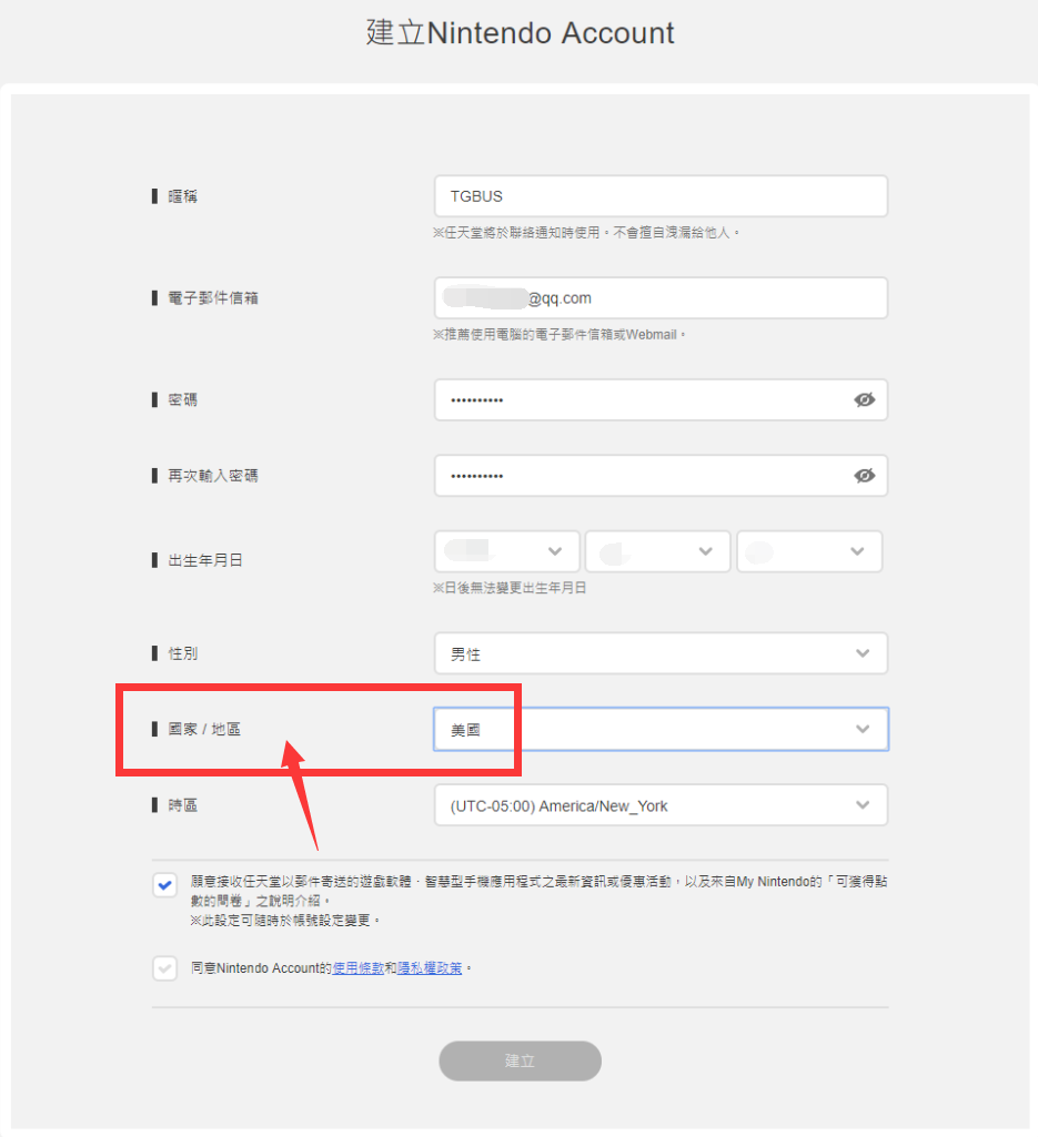 这里需要注意的是,“国家/地区”就决定了你的账号是哪一服的。你想注册哪服账号,就选哪个国家。此处以美区为例。