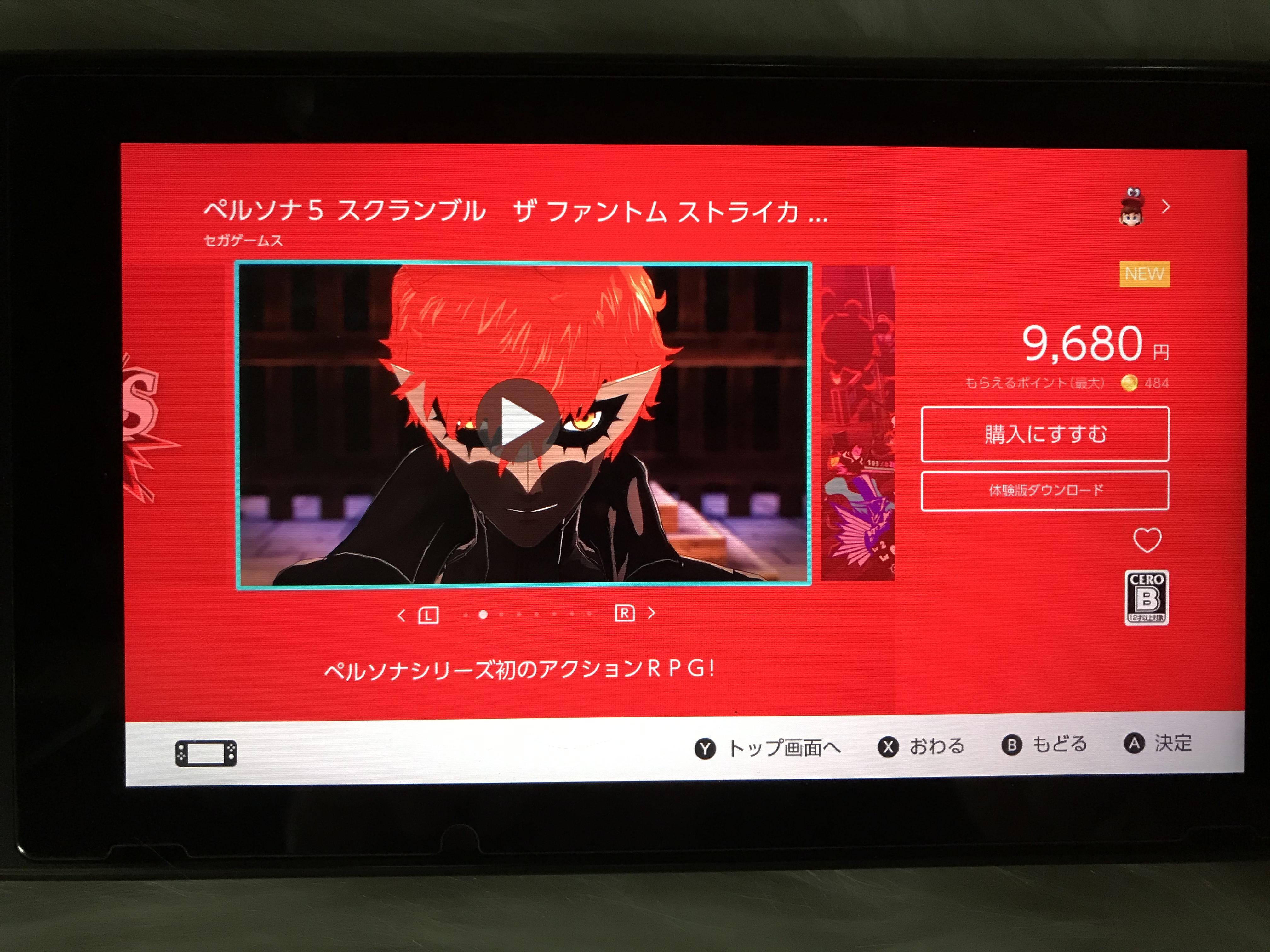 首先,还是点开NS主菜单最下面第二个eShop程序,然后选择我们之前刚刚申请的账号头像进入。这里提醒各位,NS商店语言并不会跟主机语言走,而是使用账号所属地的语言,也就是说日服商店默认日语,美区商店默认英语,这可能会需要一些外语基础。不过假如你一点基础也没有,也不要着急,因为这些商店尽管可能略有差异,但是在页面布置和购买页面则几乎相同,所以只要你通过游戏封面,就能照猫画虎完成购买。