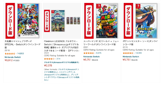 日本任天堂官方不卖兑换码,但授权了日本亚马逊在线卖码。不少游戏在日亚上买兑换码会有9折优惠,首发买数字游戏价格还是挺香的 。