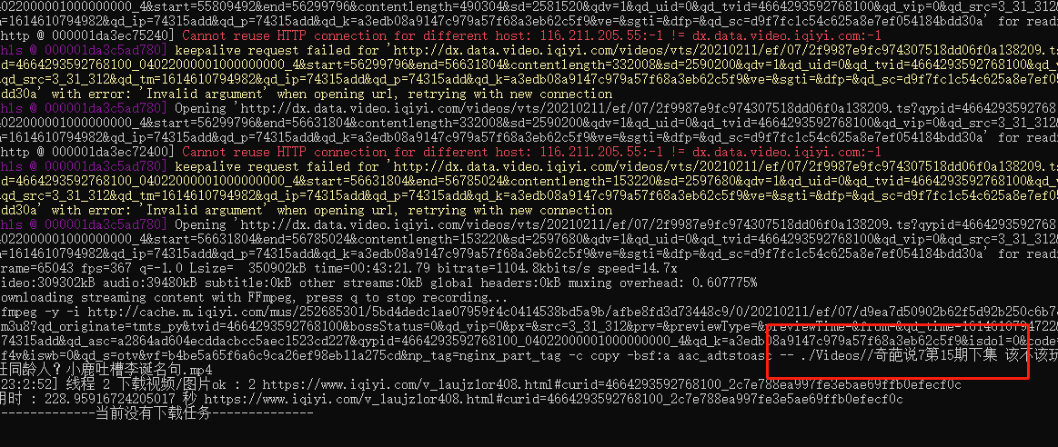 其实原理也简单,就是把网站视频加载的流数据.ts迷你视频文件片段加载本地硬盘,然后客户端在按文件序进行拼装及文件格式转换。最后在本地目录找到同名的mp4文件就是下载目标了。